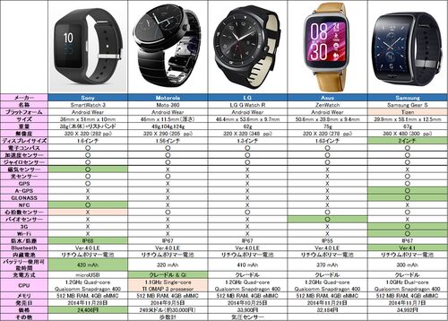 2015年以降のSmartWatch予想とお願い 2014年続々と発売されたandroid wearのsmart watchのスペックをまとめました。デザインや詳細スペックを購入の際の参考にしようと思います。